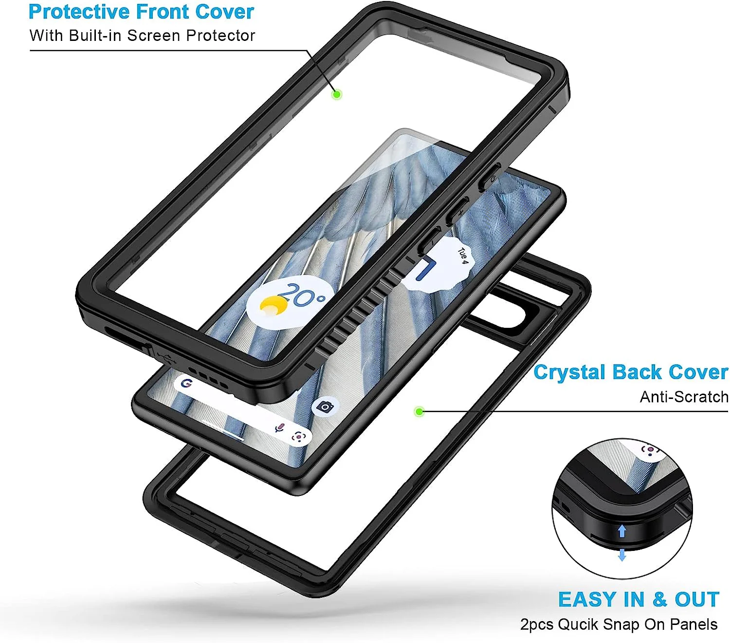 ăIP68 Waterproofă: Compatible with Google Pixel 7a. (Not fit for Pixel 7 (6.3 inch or Pixel 7 Pro)Â Fully sealed body designed to be waterproof for any underwater activities. can submerge underwater for 6.6 ft/1 hour, perfect suit for outdoor water sports and daily use.