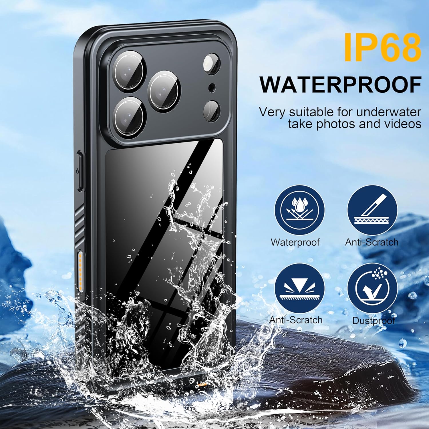 ăIP68 Waterproofă: Compatible with iPhone 17 Pro Max 6.9". With its IP68 waterproof rating, this iPhone 17 Pro Max case provides ultimate protection against water, making it perfect for various outdoor activities or daily use. Whether hiking, camping, or enjoying a beach day, your iPhone will be safe and sound.